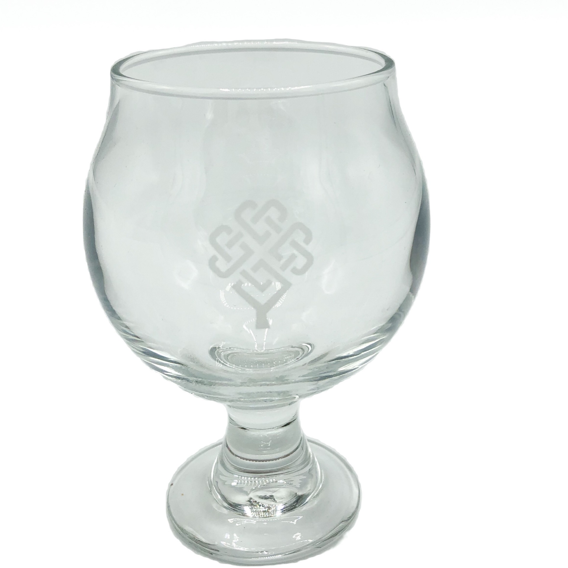 A 5oz tasting glass with the Loch Mór tree logo in the middle of the glass. (these are the cute little glasses we use on our tasting flights) Perfect for cider sampling.